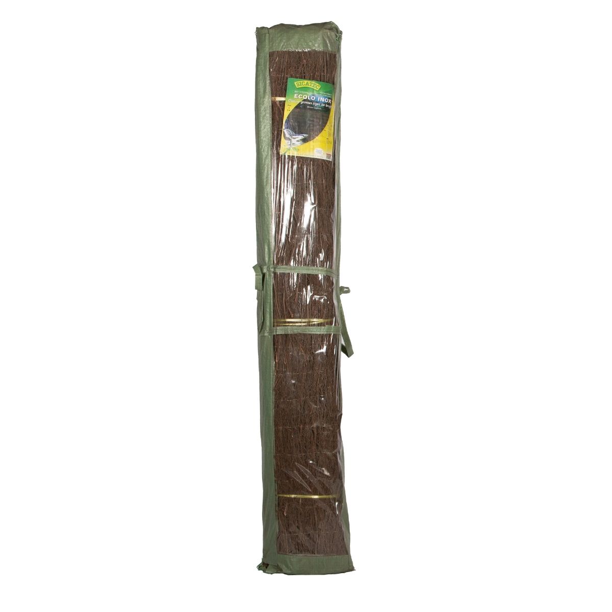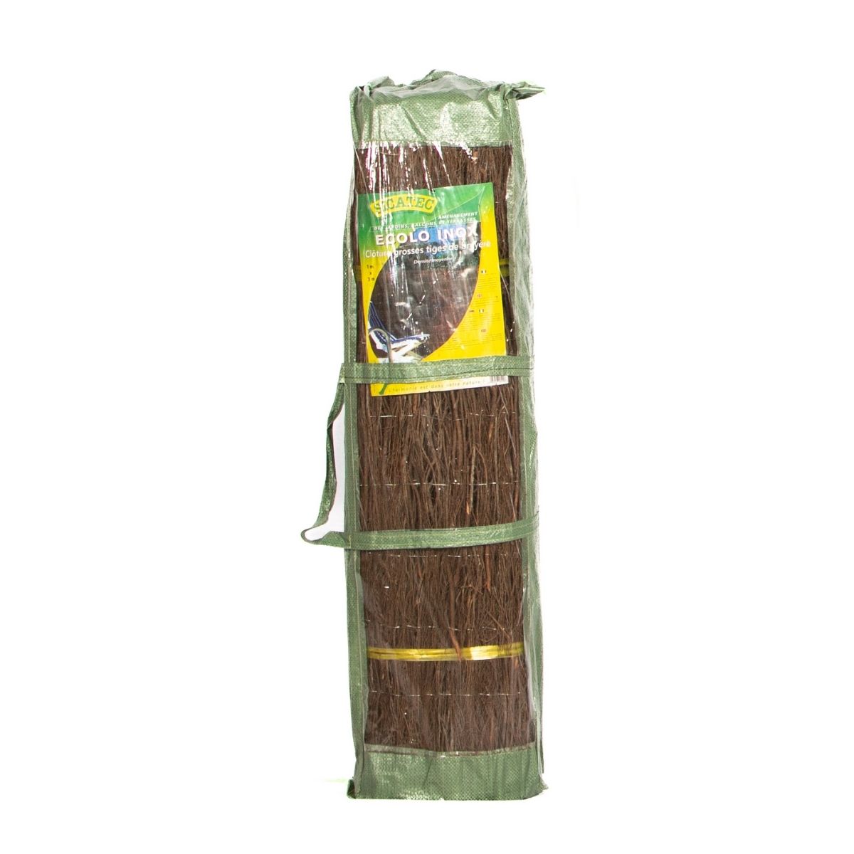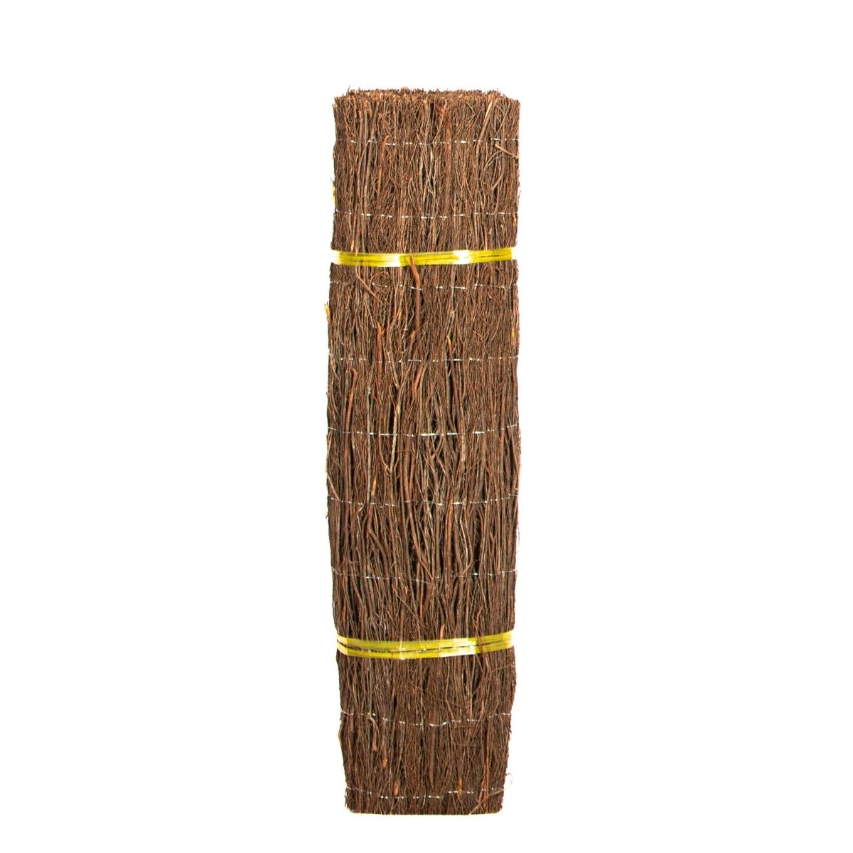 Heather fence made of thick, rot-proof stems of medium density, woven with stainless steel wire, delivered with a biodegradable carrying bag.