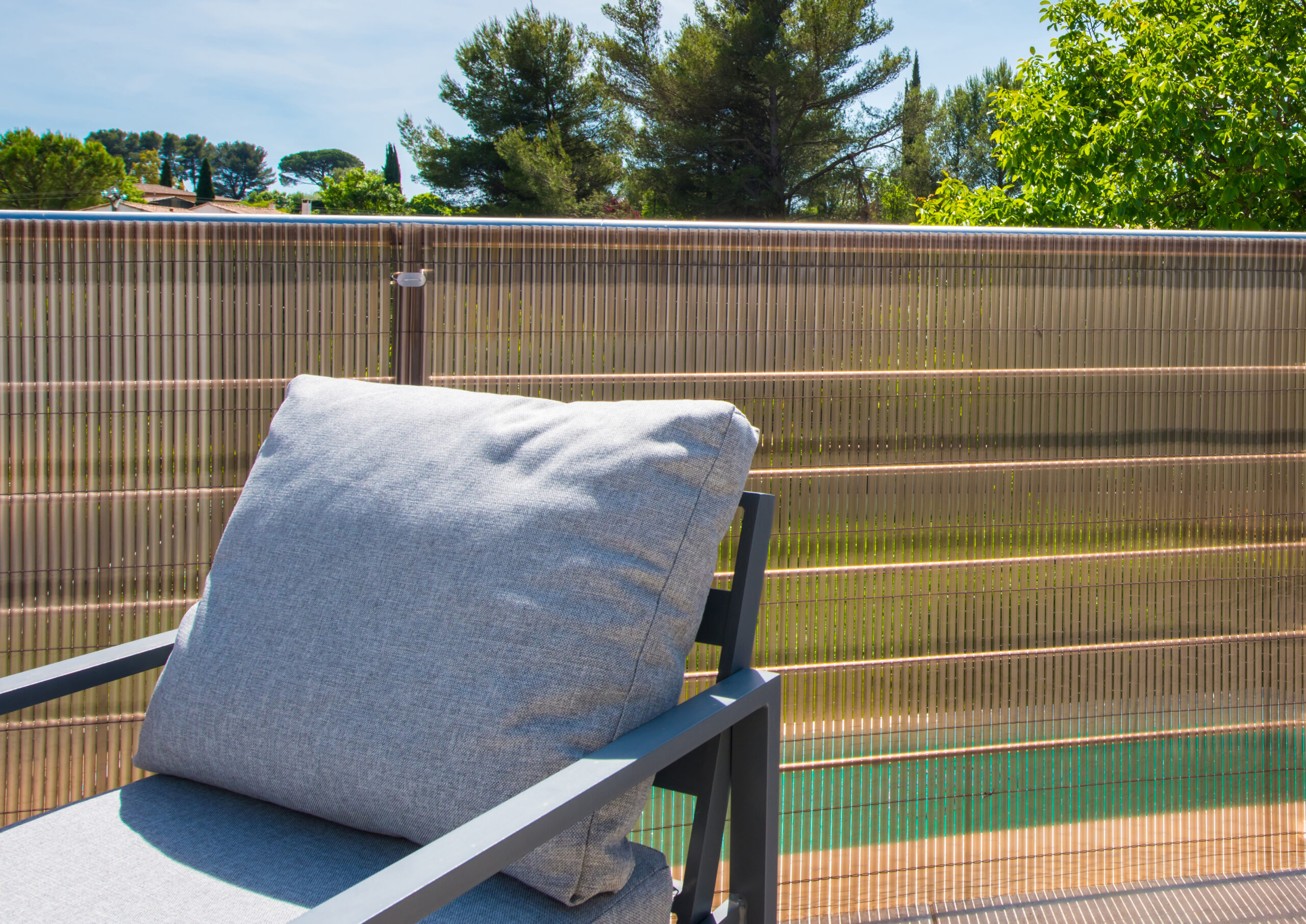 Canisse PVC double face translucide qui laisse passer la lumière tout en gardant le côté occultant. Densité 1,35 KG/m2