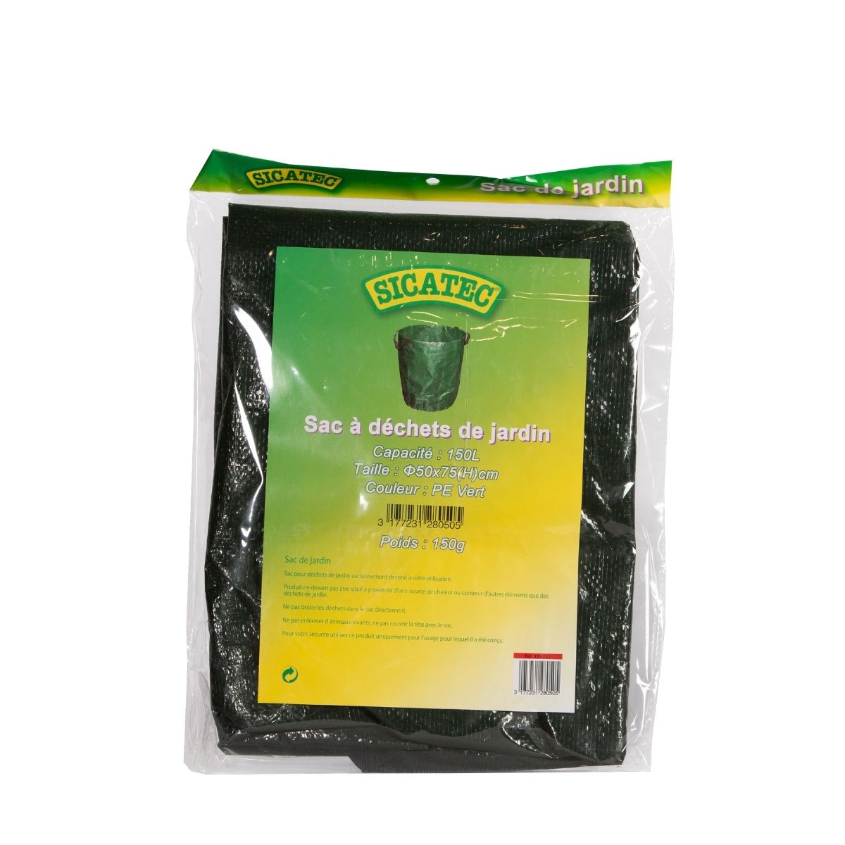 150-liter Polyethylene garden waste bag with 2 handles.